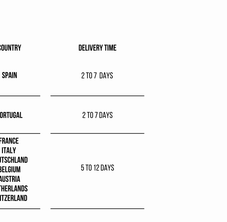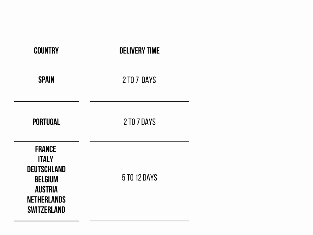 Shipping times depend on your location and selected shipping method. Check the table for estimated delivery times.